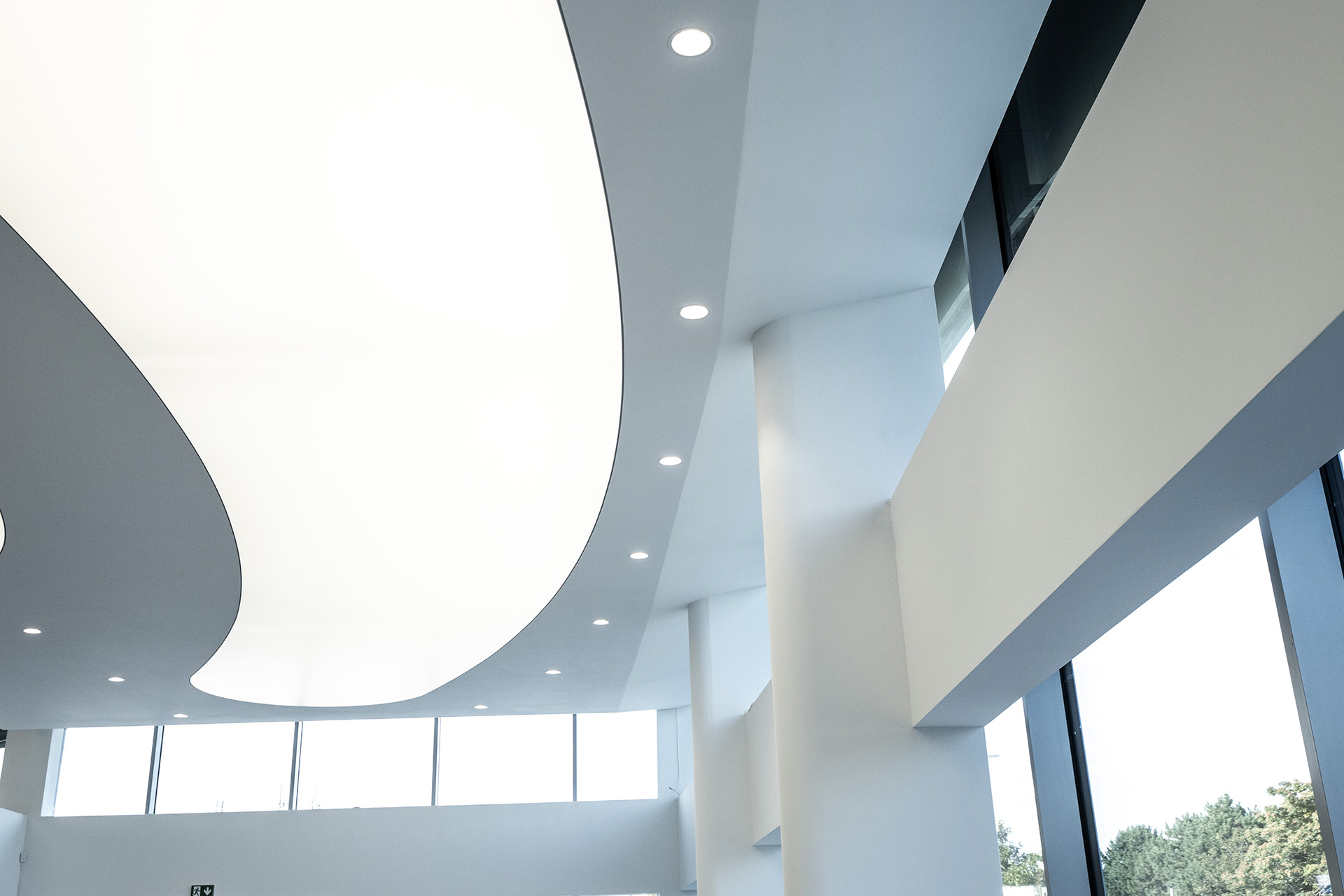 Im Projekt setzten wir Hilfsdeckenkonstruktionen von EasyBoard ein, wobei präzise Bögen eine zentrale Rolle spielten. Die Fertigung der Profile direkt nach exakten DWG-Zeichnungen ermöglichte hohe Genauigkeit, schnelle Montage und problemlose Verbindung mit den Spanndecken.