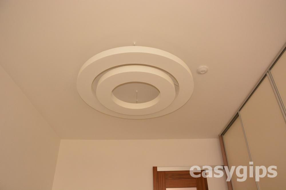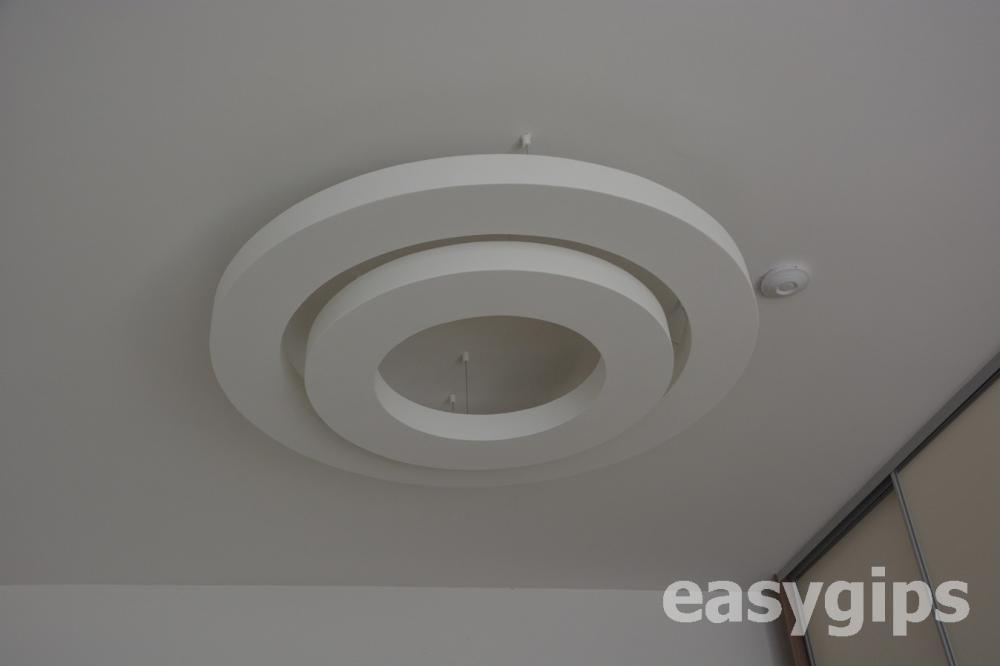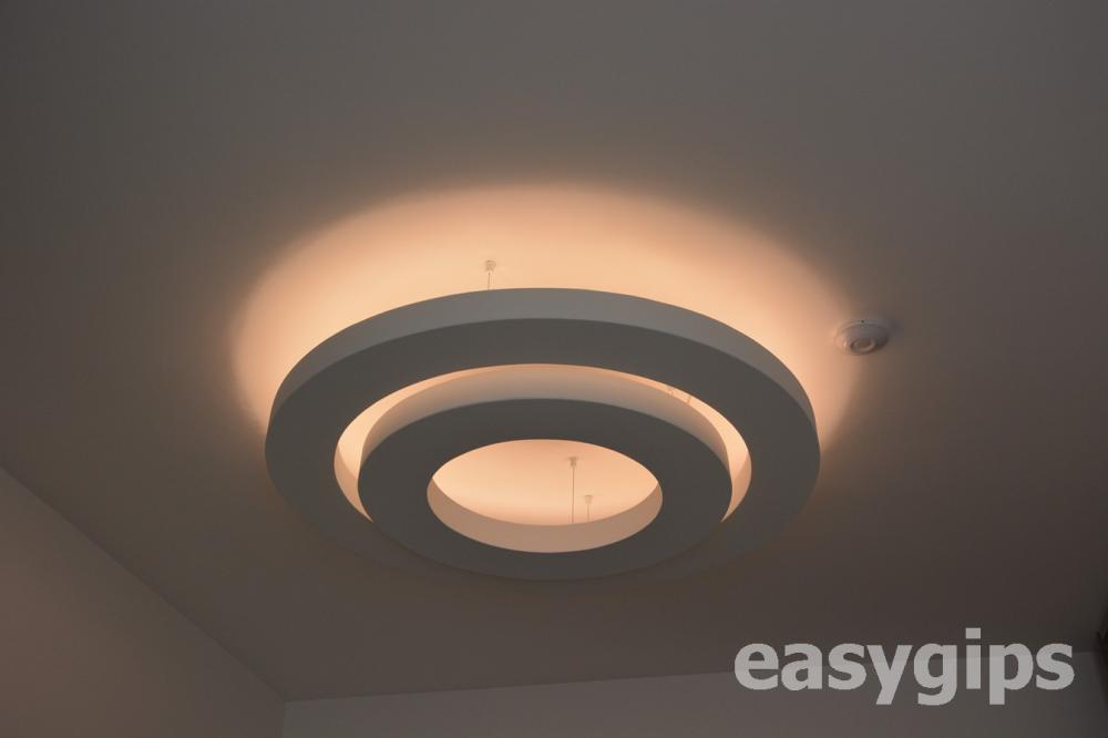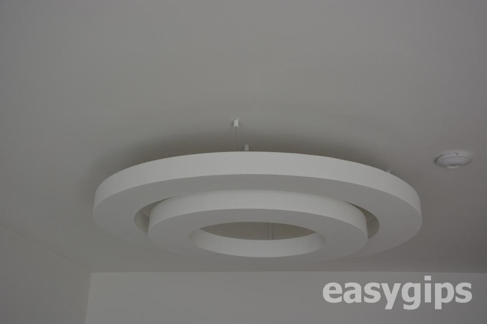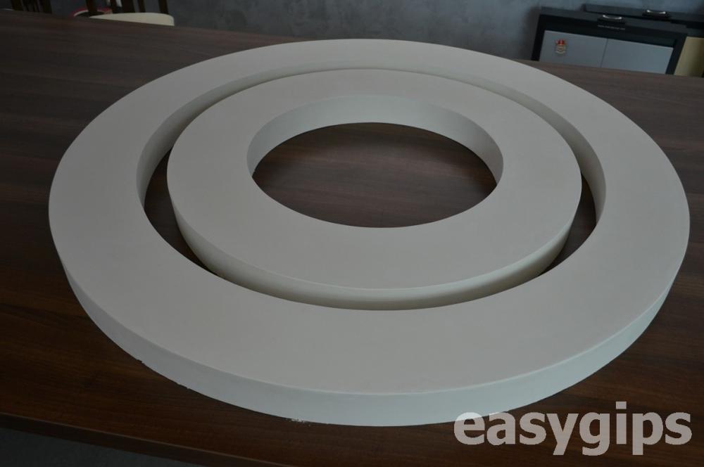 Aufgesetzte Gipskartonringe und -kreise bieten eine erstaunliche Variabilität im Innenraum. Verschiedene Farbkombinationen, Abmessungen und Starthöhen ermöglichen unzählige Kombinationsmöglichkeiten. Die Oberfläche der Ringe kann mit unterschiedlichen Materialien behandelt werden und bietet so eine originelle Ergänzung zur abwechslungsreichen Gestaltung von Wohn-, Gewerbe- und Büroräumen.