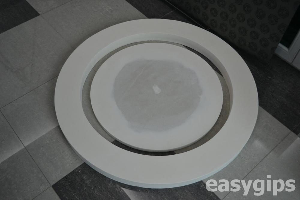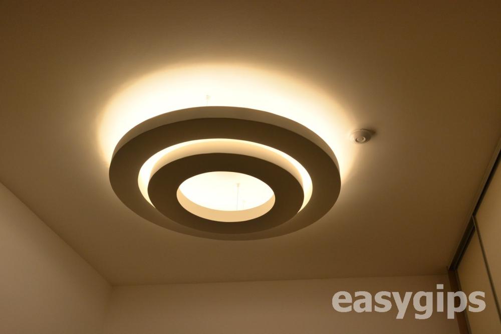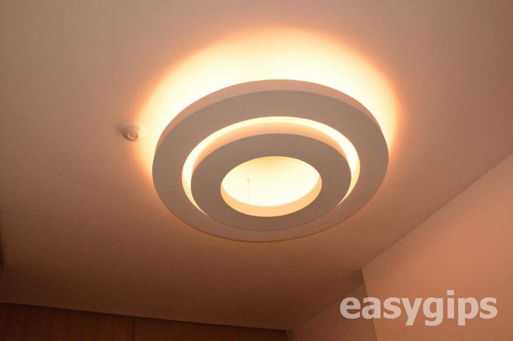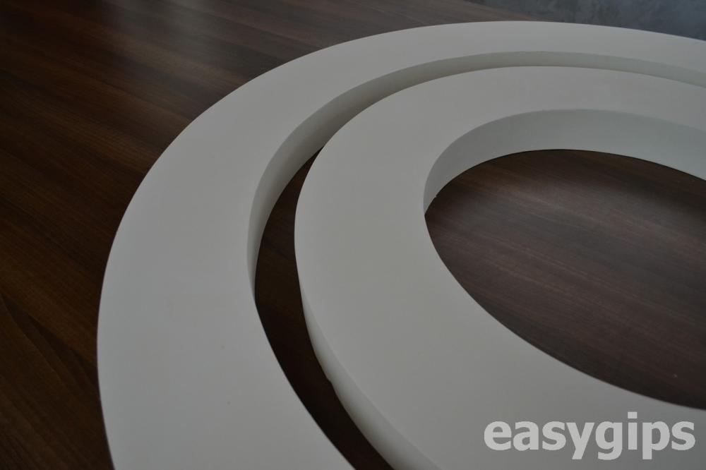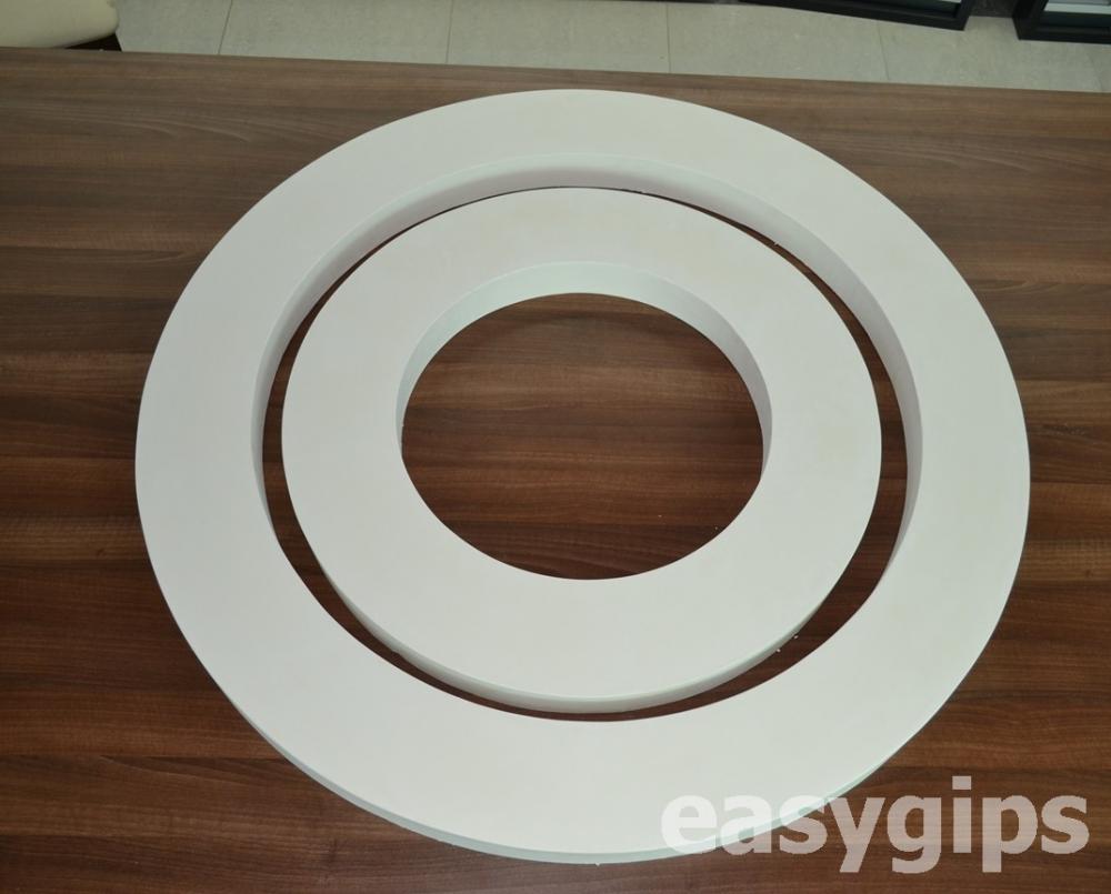 Aufgesetzte Gipskartonringe und -kreise bieten eine erstaunliche Variabilität im Innenraum. Verschiedene Farbkombinationen, Abmessungen und Starthöhen ermöglichen unzählige Kombinationsmöglichkeiten. Die Oberfläche der Ringe kann mit unterschiedlichen Materialien behandelt werden und bietet so eine originelle Ergänzung zur abwechslungsreichen Gestaltung von Wohn-, Gewerbe- und Büroräumen.