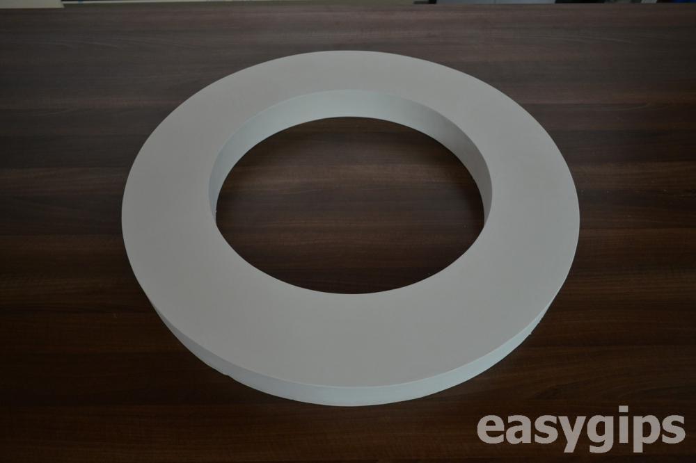 Gipskartonringe können mit handelsüblichen Gipskartonabhängern, Gewindestangen oder Seilen an der Decke befestigt werden. Die Standardoberfläche der Ringe ist eine gespachtelte und geschliffene Oberfläche in Q2-Qualität.