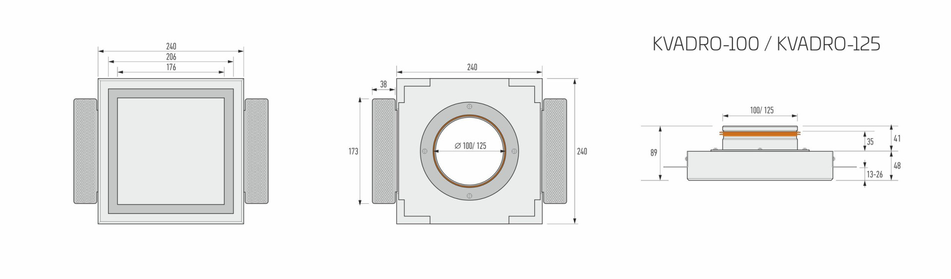 Die Abdeckung des Diffusors muss immer bündig mit der Decke abschließen. Jeder Diffusor wird mit einem einfach zu bedienenden Ausgleichsventil geliefert. Falls eine zusätzliche Luftstromregelung erforderlich ist, empfehlen wir die Verwendung dieses Zubehörs.